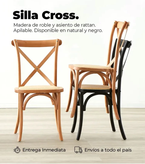 SILLA CROSS, el must-have para tu hogar. Con una estructura de madera de roble laqueada en un cálido color natural, esta silla no solo es resistente, sino que también le suma un toque de estilo a cualquier rincón. Su asiento tejido de rattan natural ofrece una comodidad única, perfecto para esos momentos de relax o para compartir con amigos. Además, es apilable, lo que la hace ideal para optimizar espacios. No te quedes sin la tuya, consultanos por Whatsapp al 1135697969 y llevate la elegancia de la SILLA CROSS a tu casa. ¡Dale una vuelta de tuerca a tu living con este diseño que nunca pasa de moda!